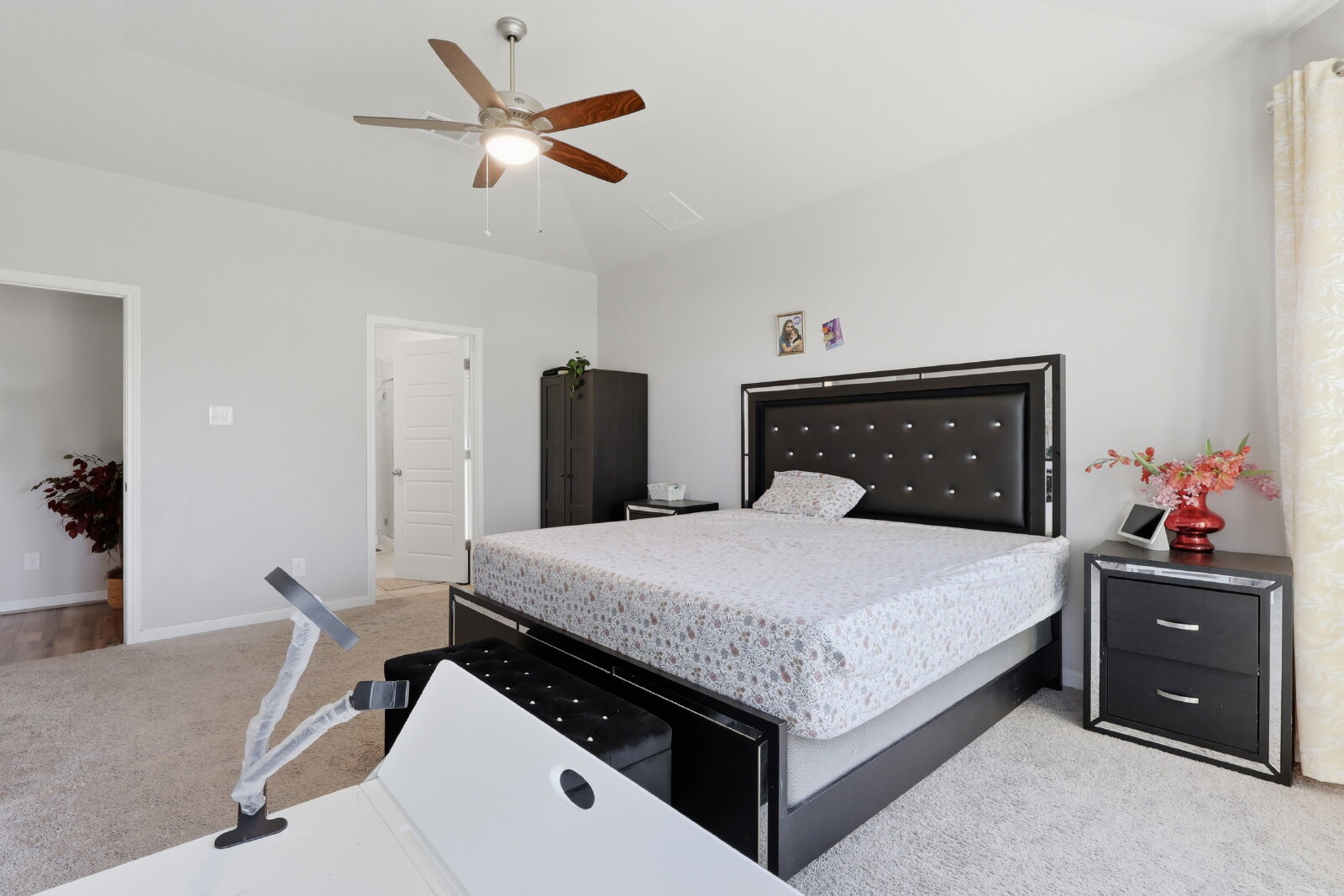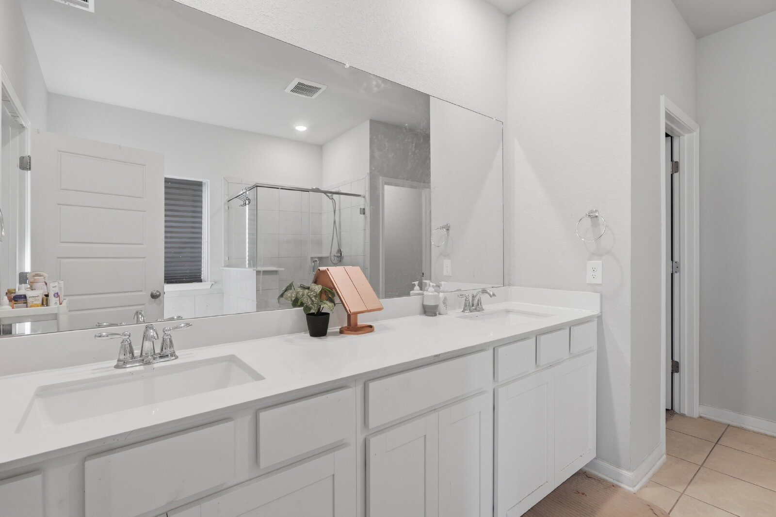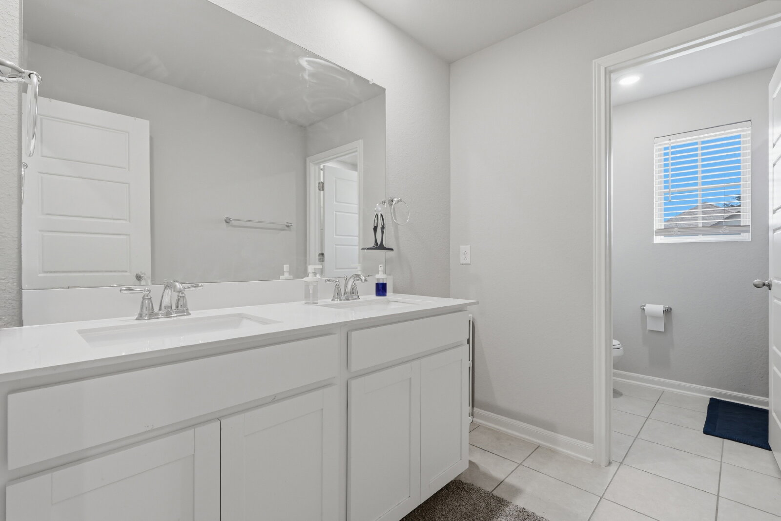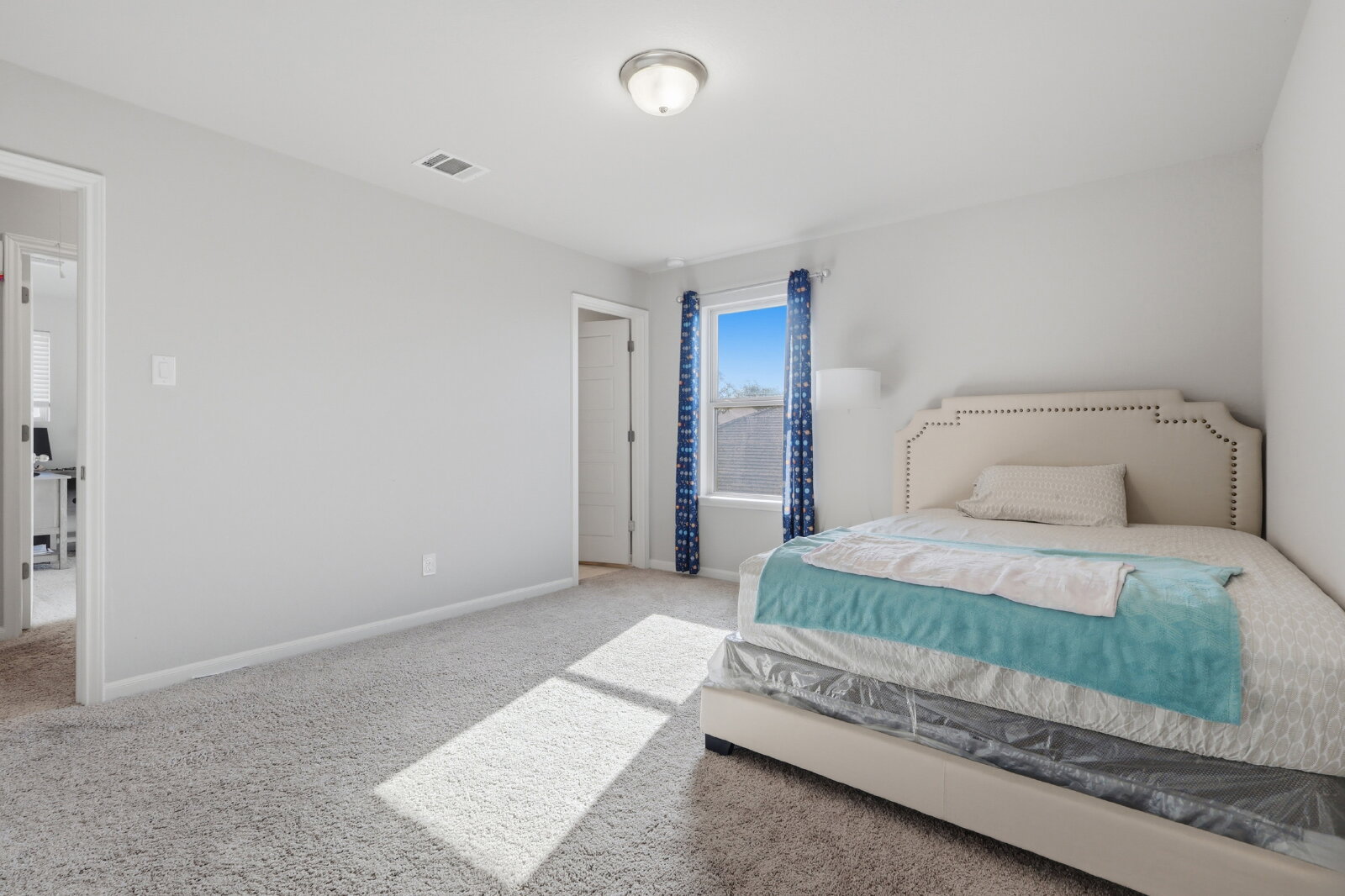 The primary suite is generously sized, featuring a private en-suite bathroom and walk-in closet. Secondary bedrooms are well-sized with access to multiple bathrooms, making this home perfect for families, roommates, or those needing extra space for a home office or guest rooms.