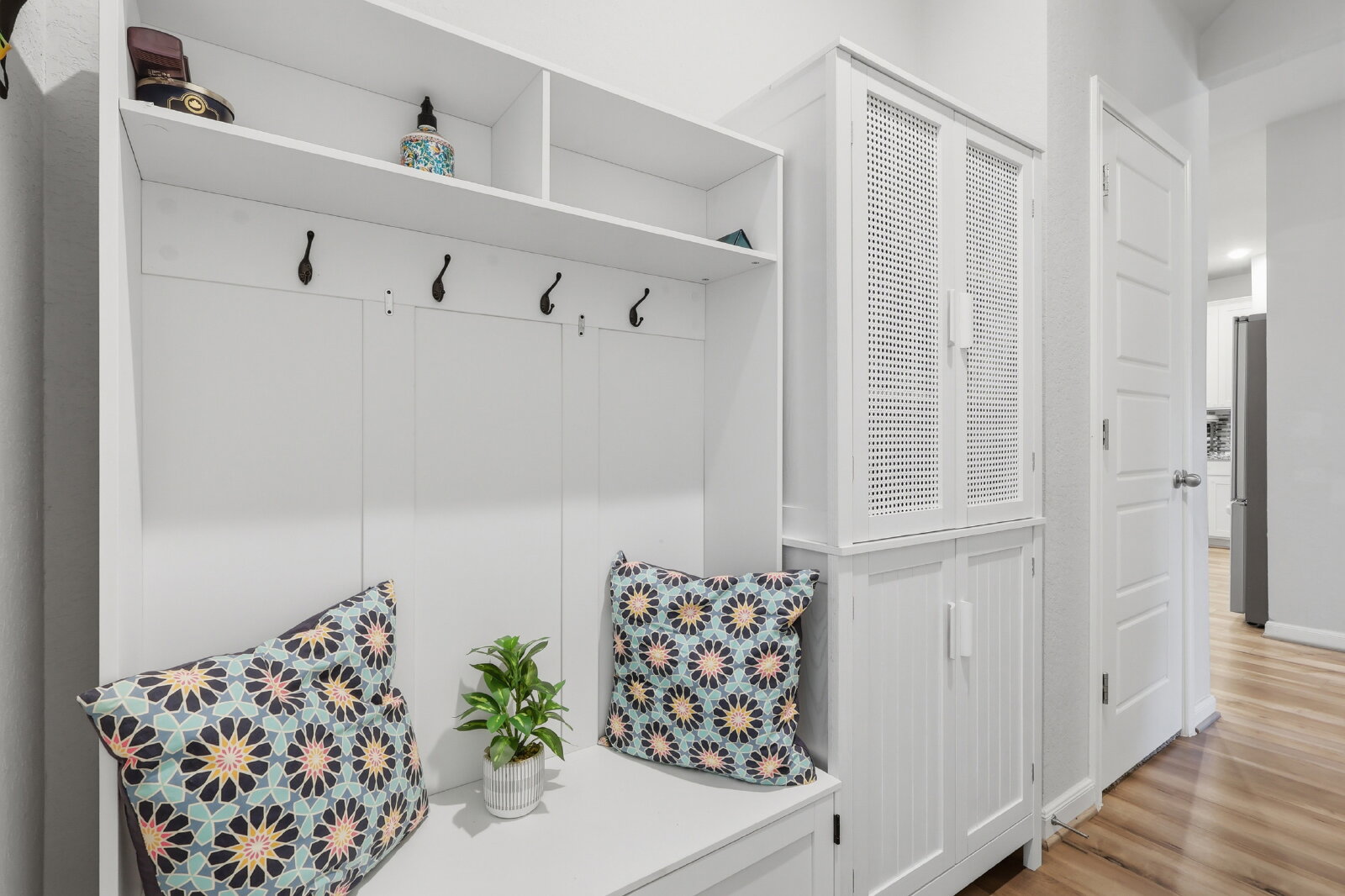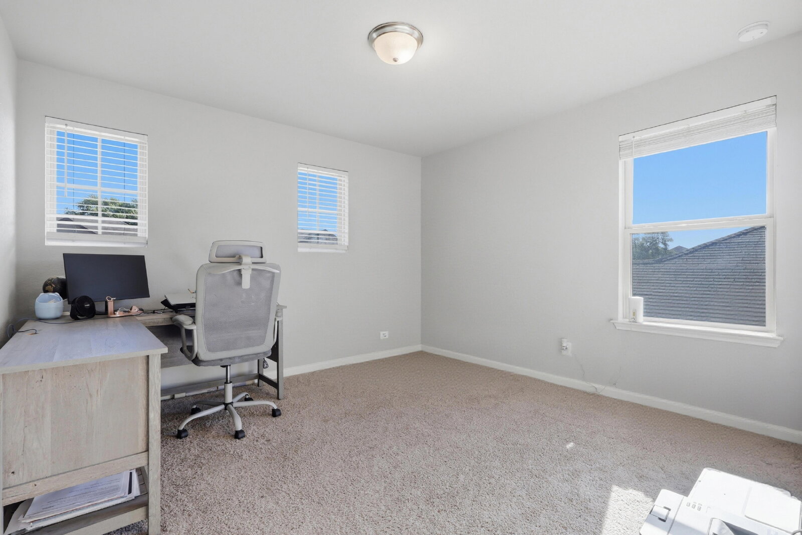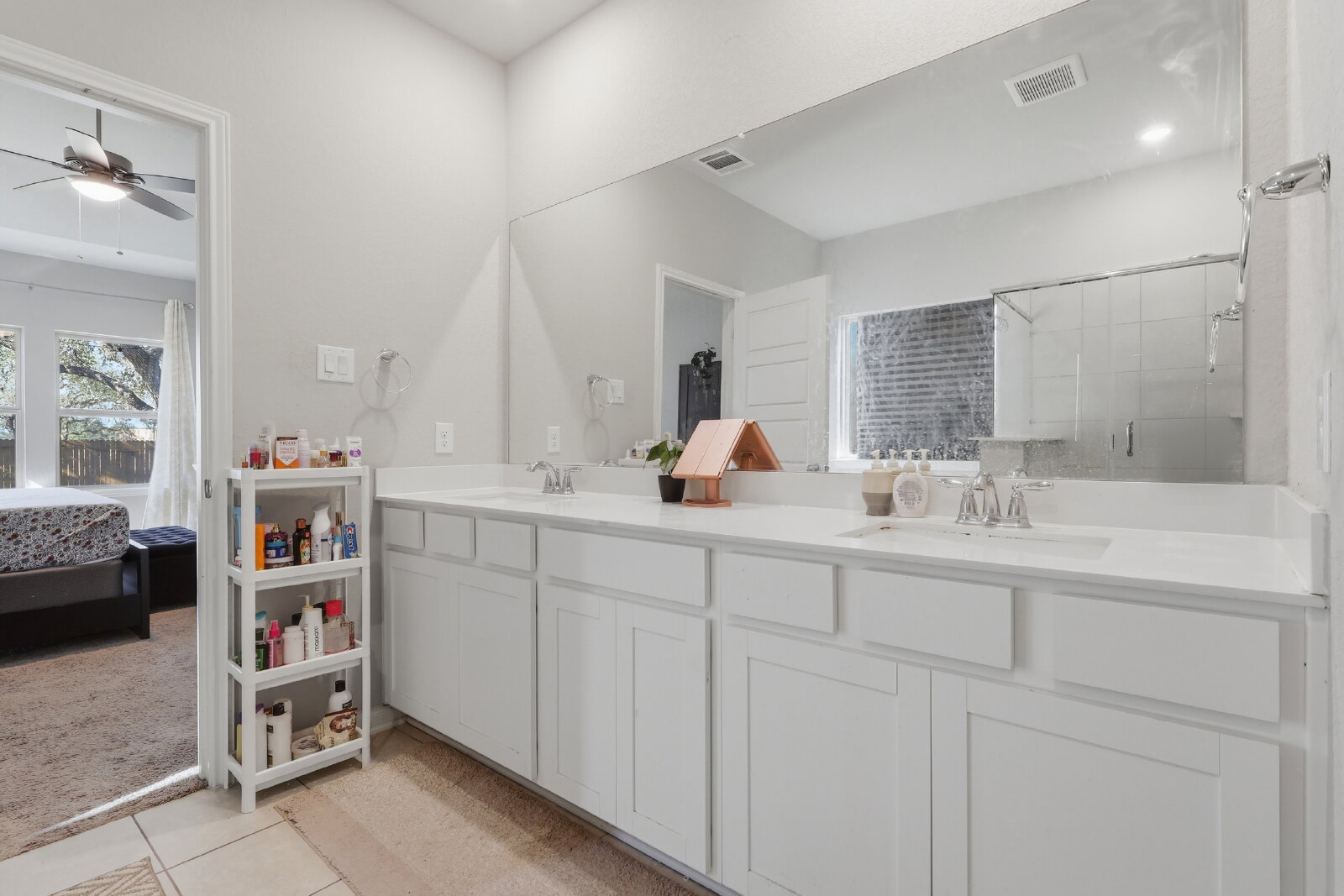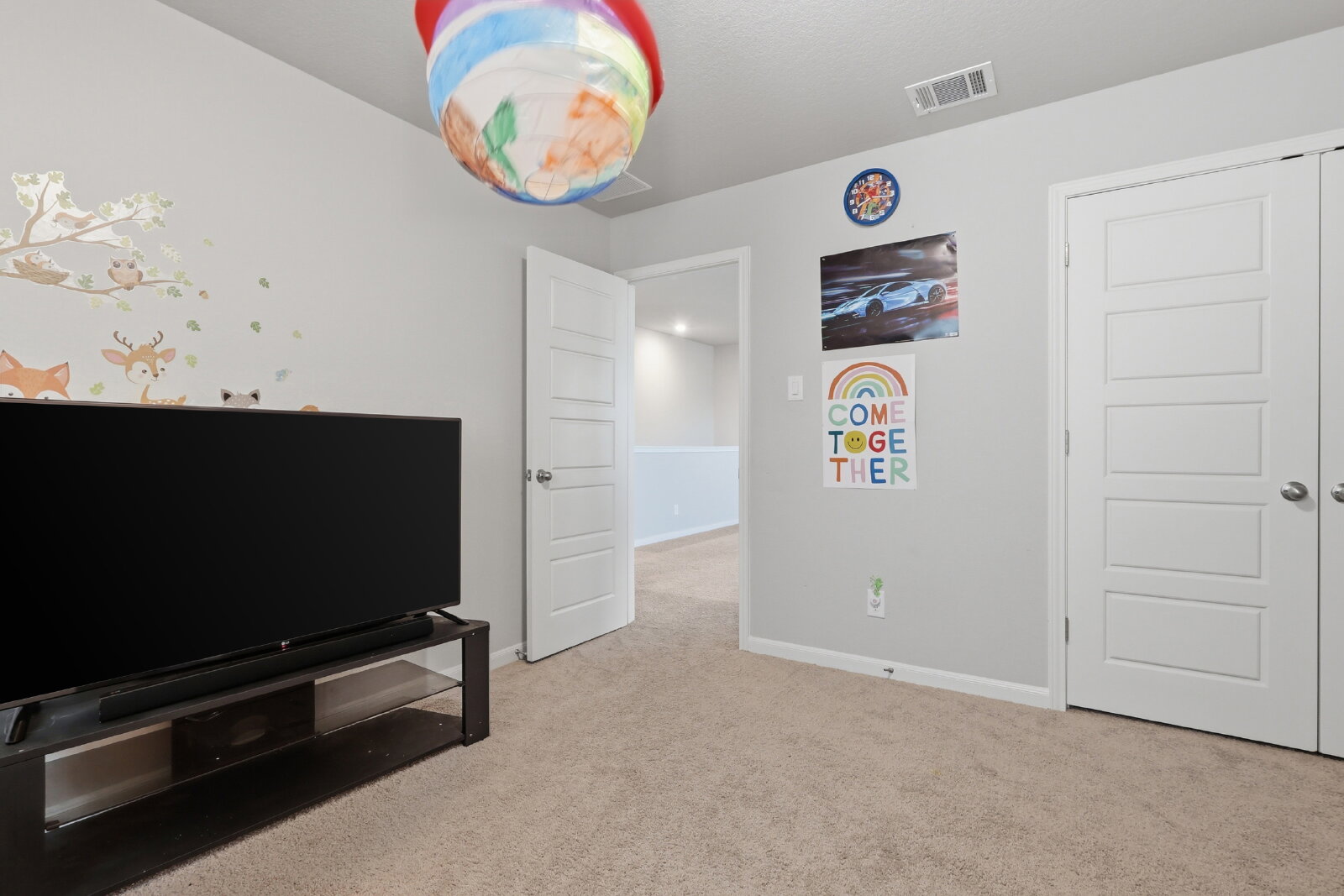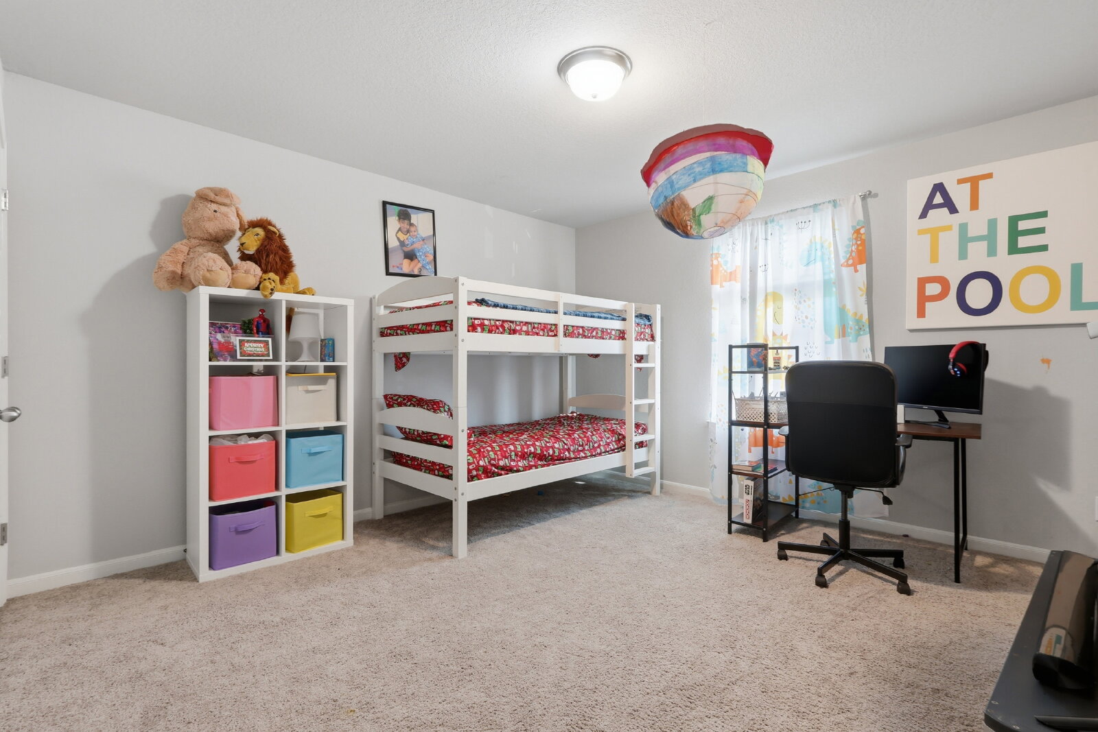 The primary suite is generously sized, featuring a private en-suite bathroom and walk-in closet. Secondary bedrooms are well-sized with access to multiple bathrooms, making this home perfect for families, roommates, or those needing extra space for a home office or guest rooms.