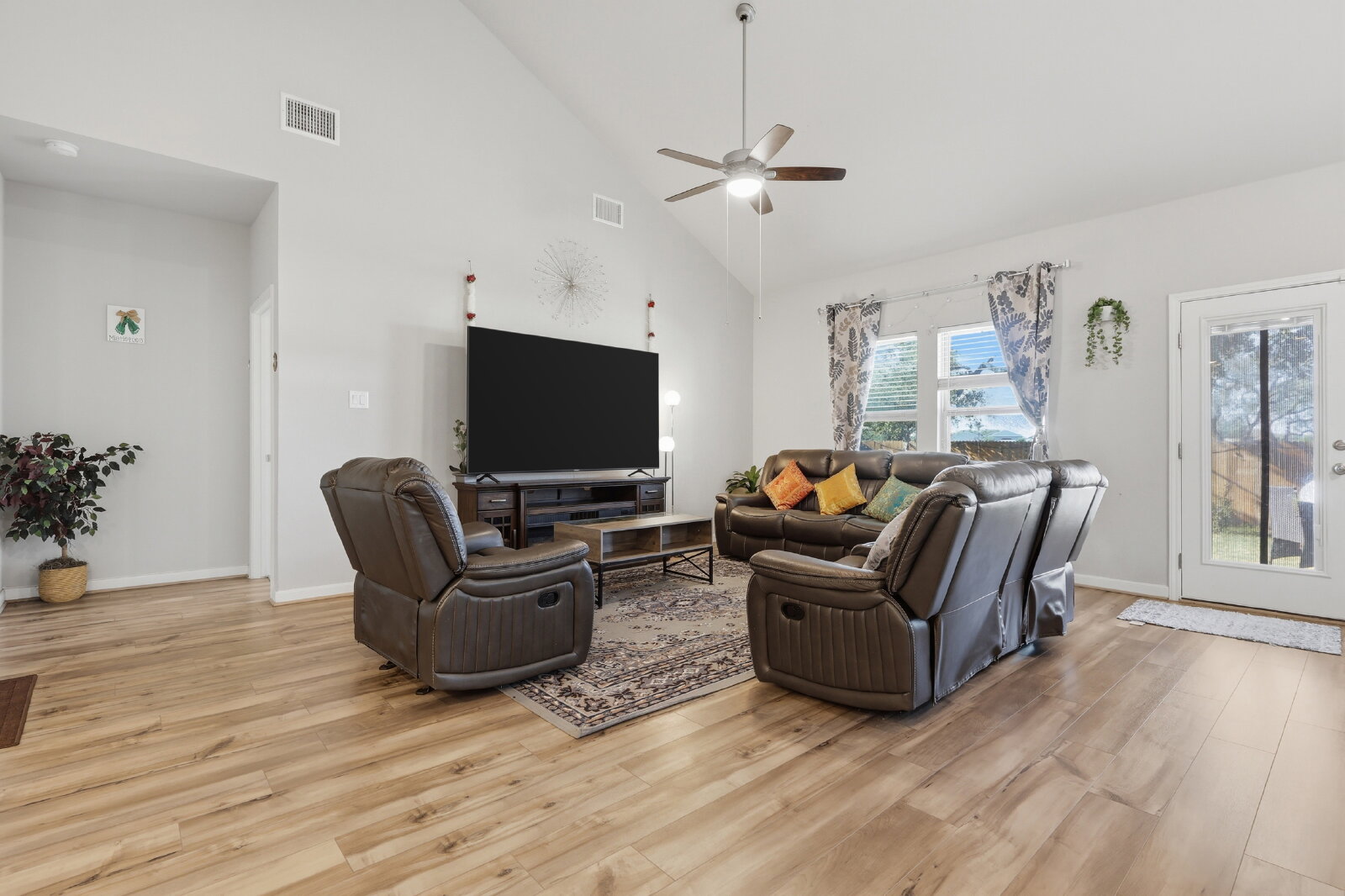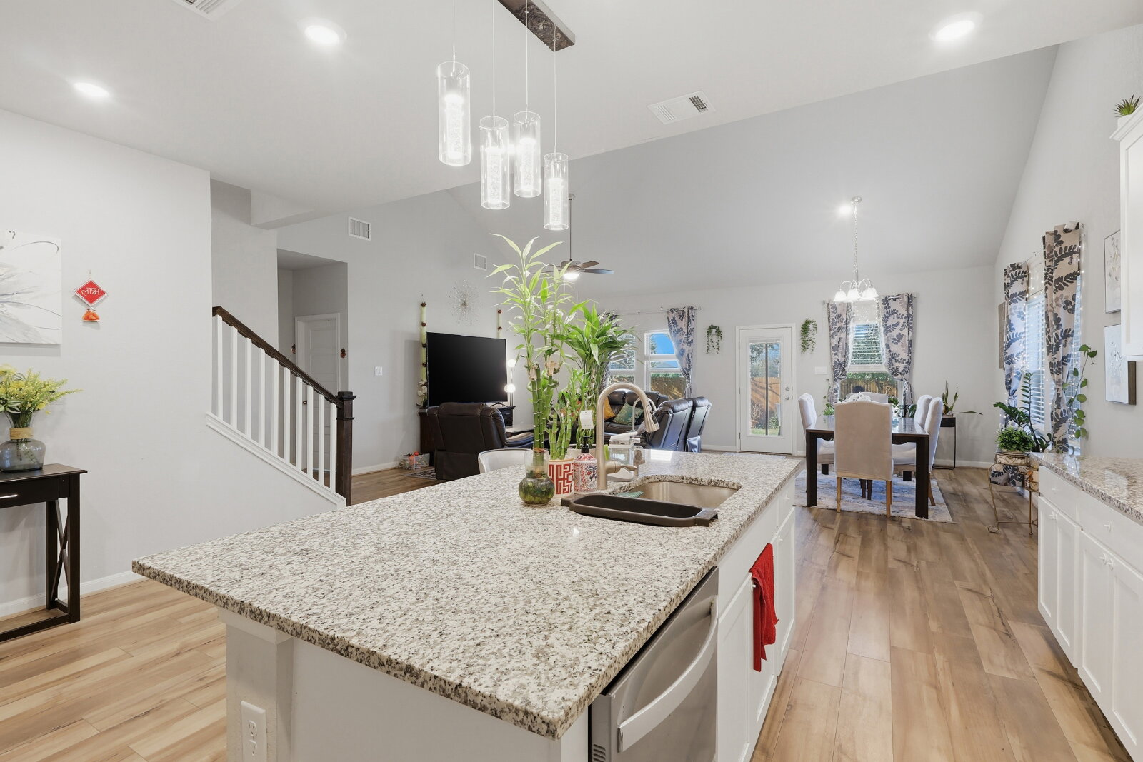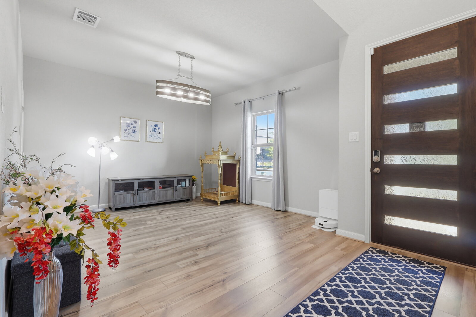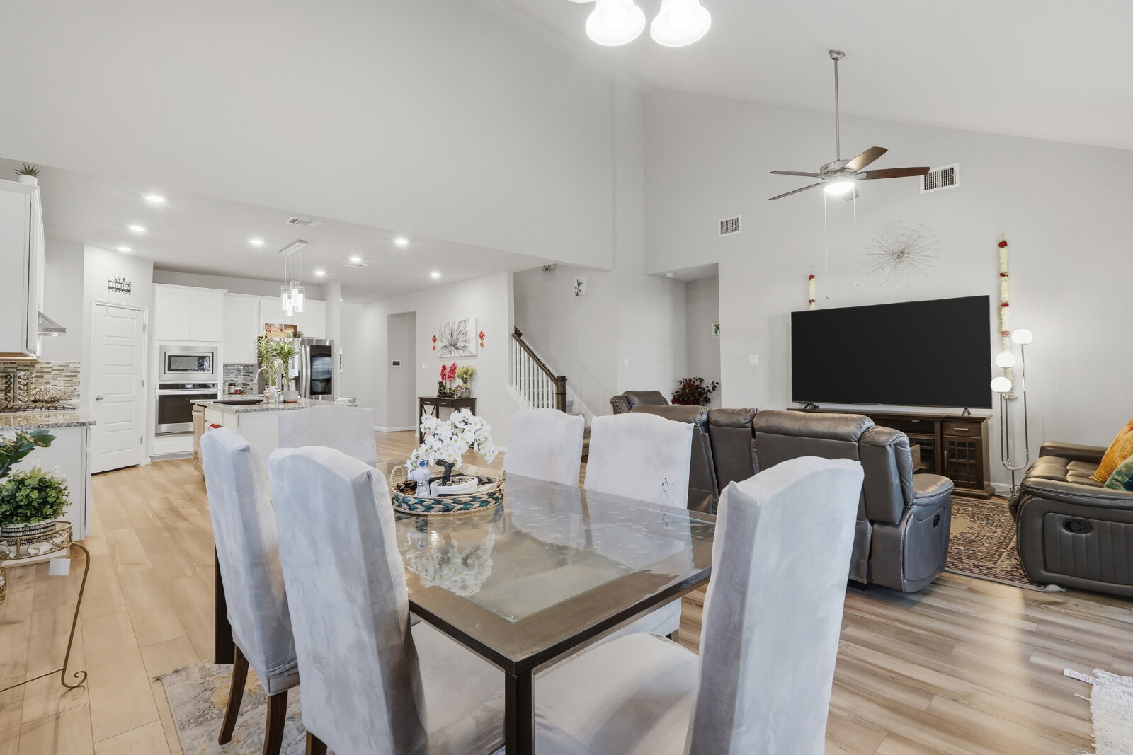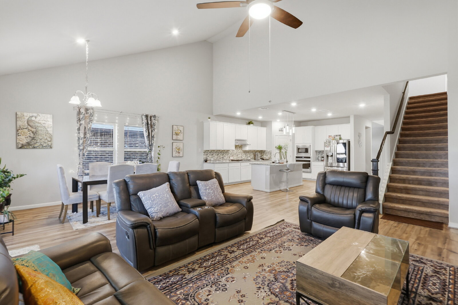 Step inside to an open-concept floor plan with spacious living and dining areas, ideal for both everyday living and entertaining. The kitchen offers ample cabinet space, modern finishes, and a large layout that flows seamlessly into the main living area.